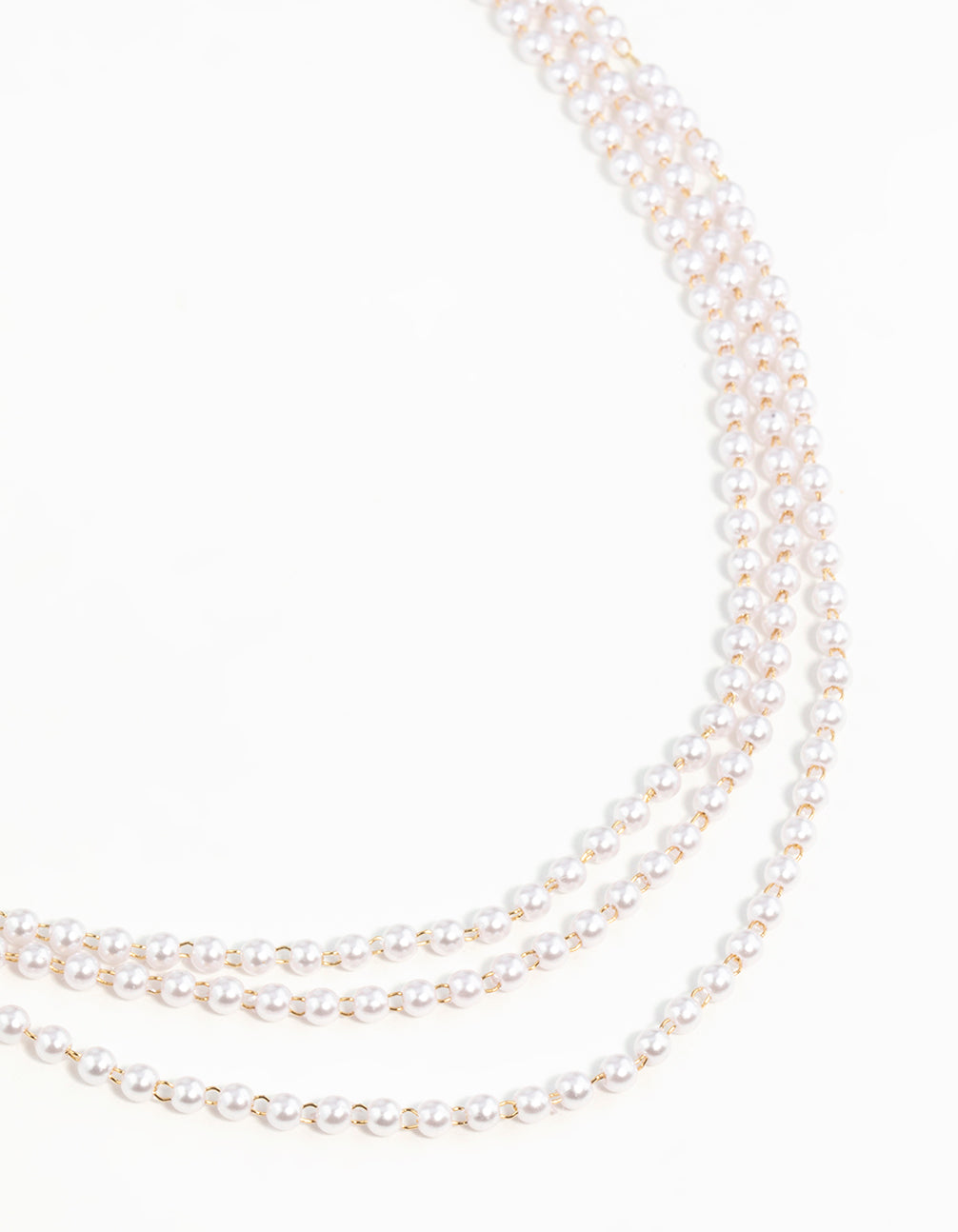 Introducing the perfect bridal necklace! This necklace features delicate strands of pearls and is perfect for adding more sophistication and elegance to your bridal ensemble.