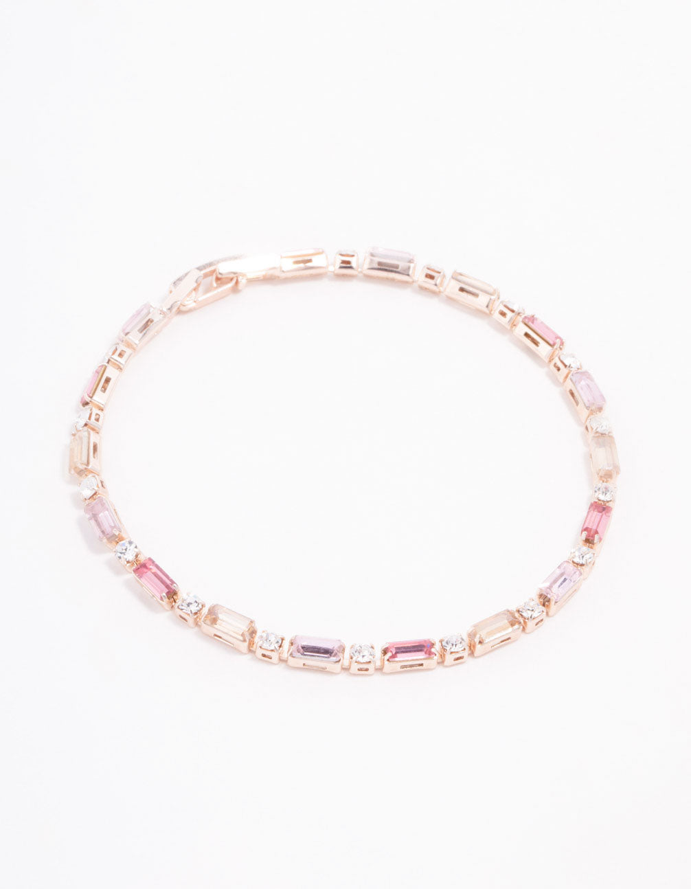 Upgrade your look with this beautiful Czech Bohemia crystal bracelet. The blend of pink and silver baguette and round-cut crystals, paired with a rose gold-toned finish, adds some dazzle to your style.