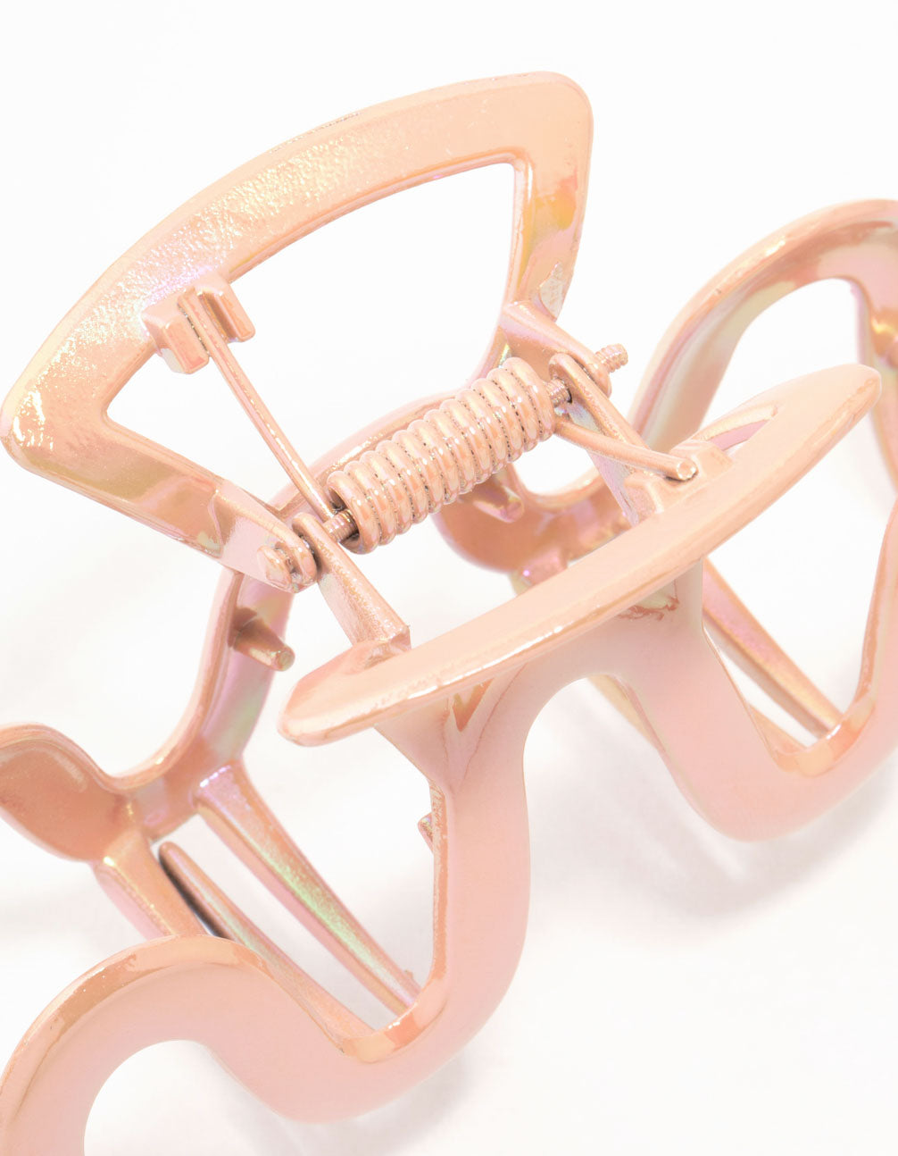 This pink-coated metal claw clip features a unique wavy design. Its chic metallic pink colour adds stylish flair, making it the perfect accessory for updos and loose hairstyles.