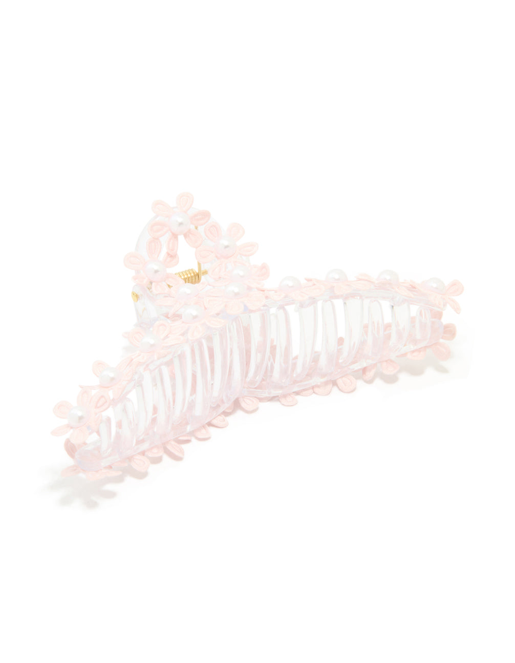 Add a pop of charm to your hairstyle with this Pink Flowers & Pearls Loop Claw Clip. This elegant hair accessory features a delicate loop design adorned with soft pink floral details and lustrous pearls, perfect for creating a feminine and sophisticated look. Whether you're heading to a garden party, a wedding, or just elevating your everyday style, this claw clip is your go-to for effortlessly chic hairdos. Use it to secure a half-up style or add a polished finish to a loose bun. Pair it with a flowy dress, a tailored jumpsuit, or even your favourite jeans and blouse for a versatile look that shines in any setting.