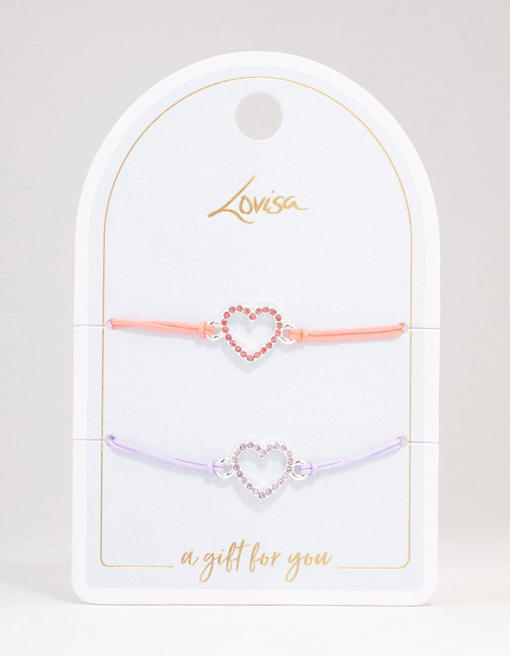 Pink & Purple Diamante Heart Cord Bracelet Pack