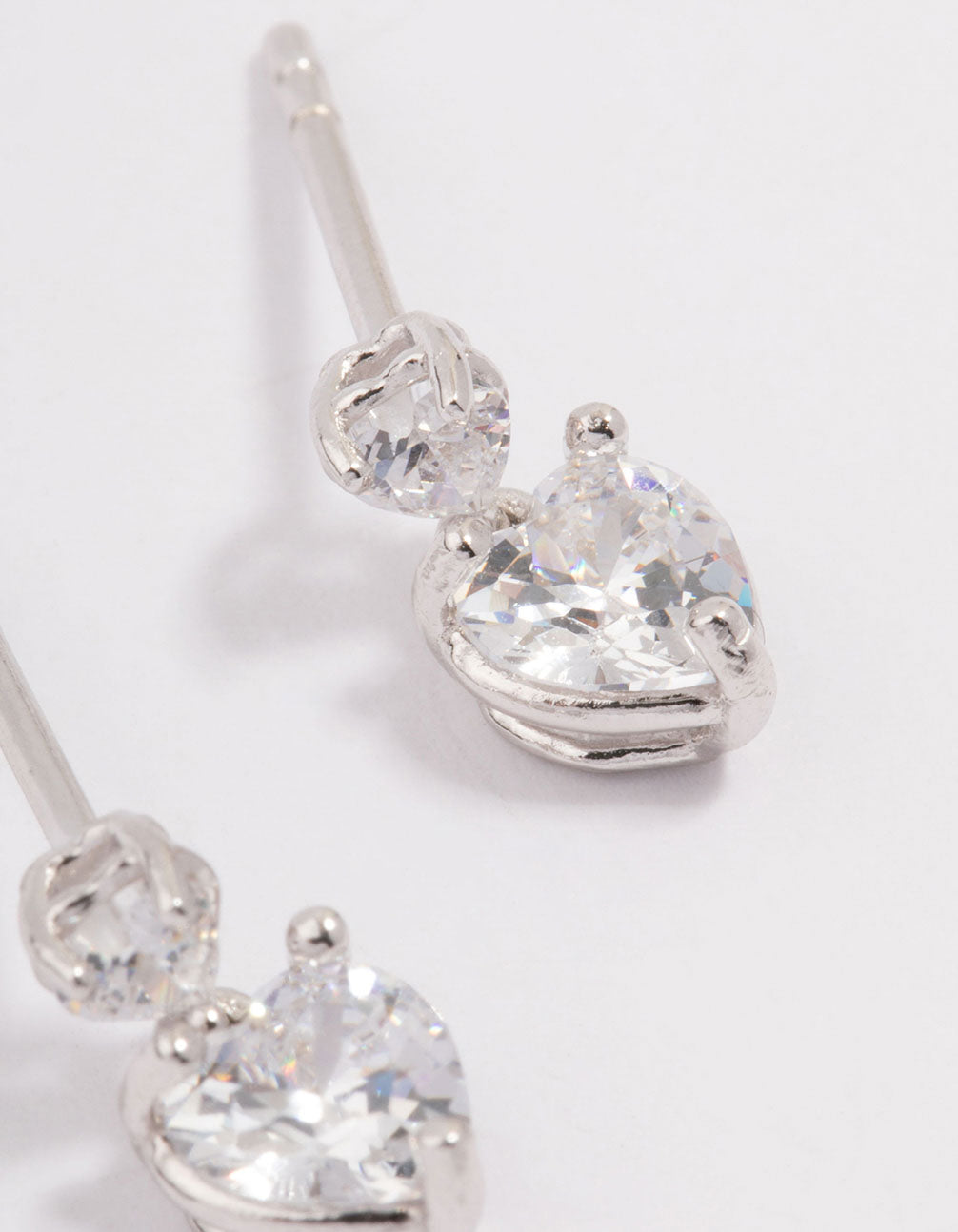 Platinum Sterling Silver Cubic Zirconia Heart Drop Earrings