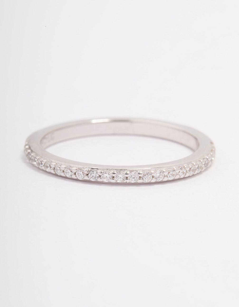 This dainty stacking ring features a fine band, encrusted with mini cubic zirconia crystals for a touch of sparkle. Perfect for styling in your everyday stack.