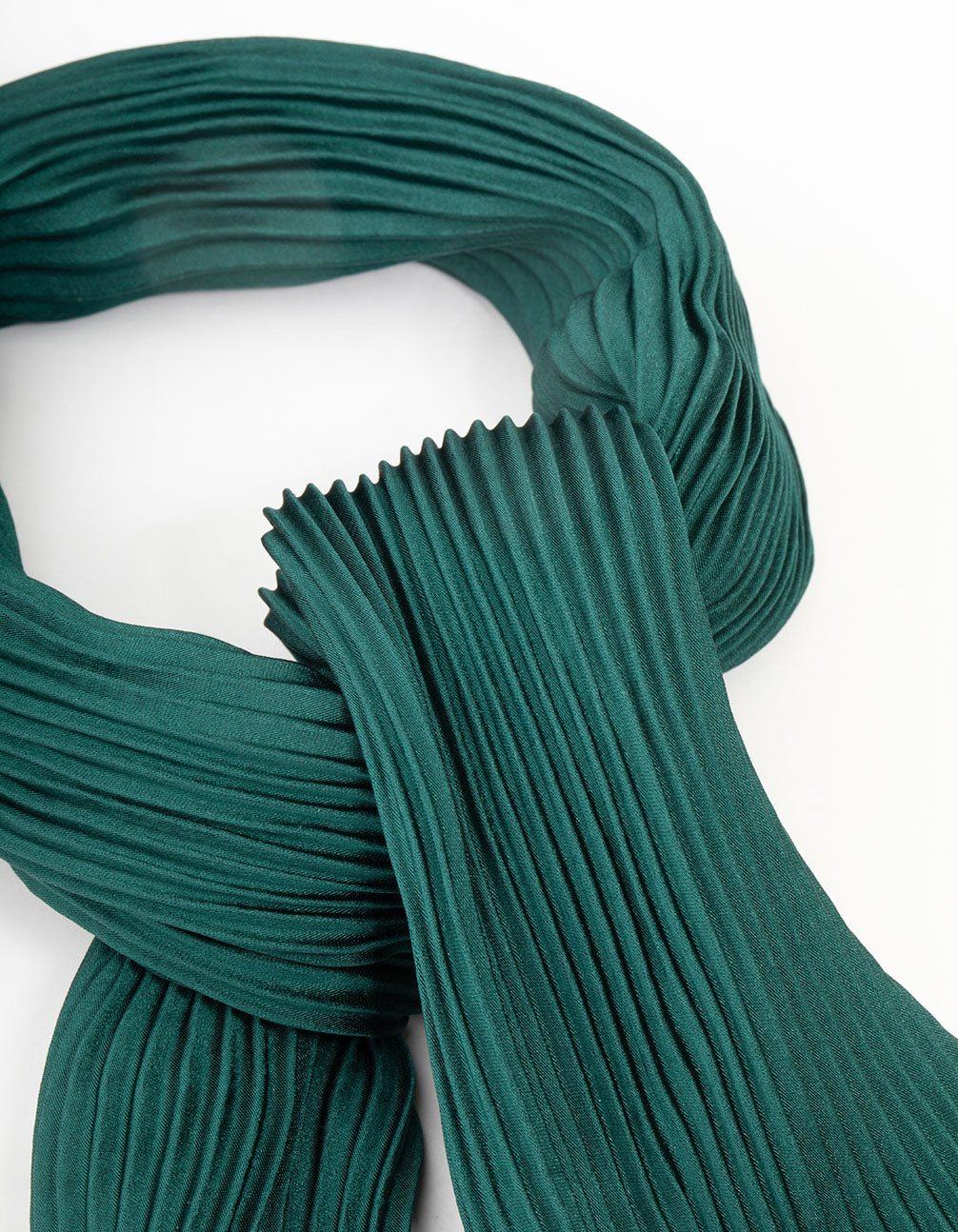 Add a pop of fabulous green with this dazzling satin scarf. Its pleated, bold green design is perfect for wearing around your neck, as a belt, in your hair, or on your bag— perfect for endless styling fun.