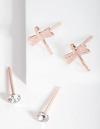 Rose Gold Plated Sterling Silver Dragonfly Stud Earring Pack