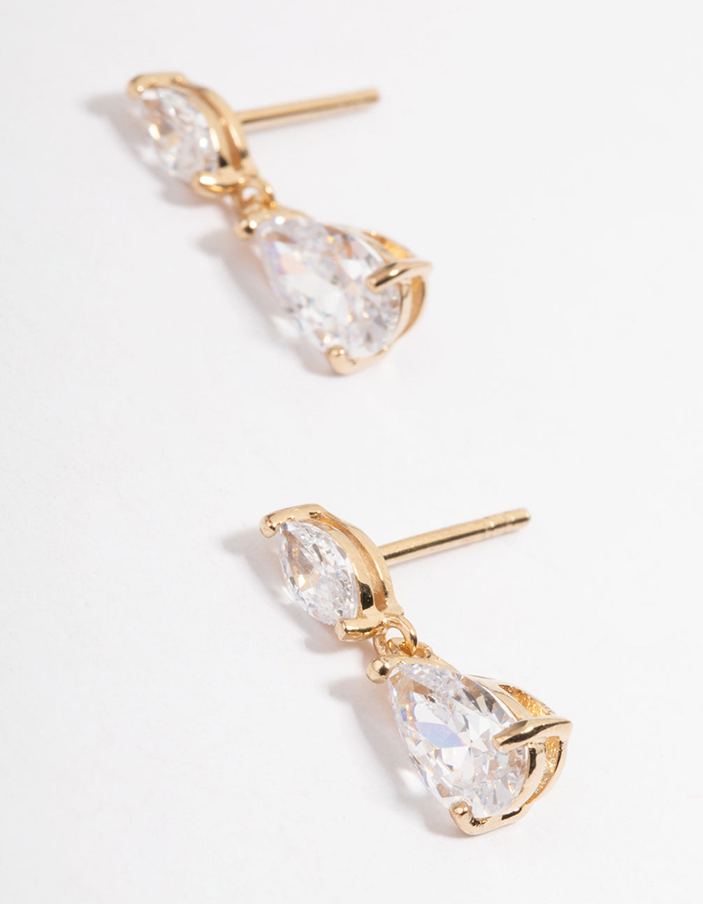 Gold Plated Sterling Silver Cubic Zirconia Marquise Drop Earrings