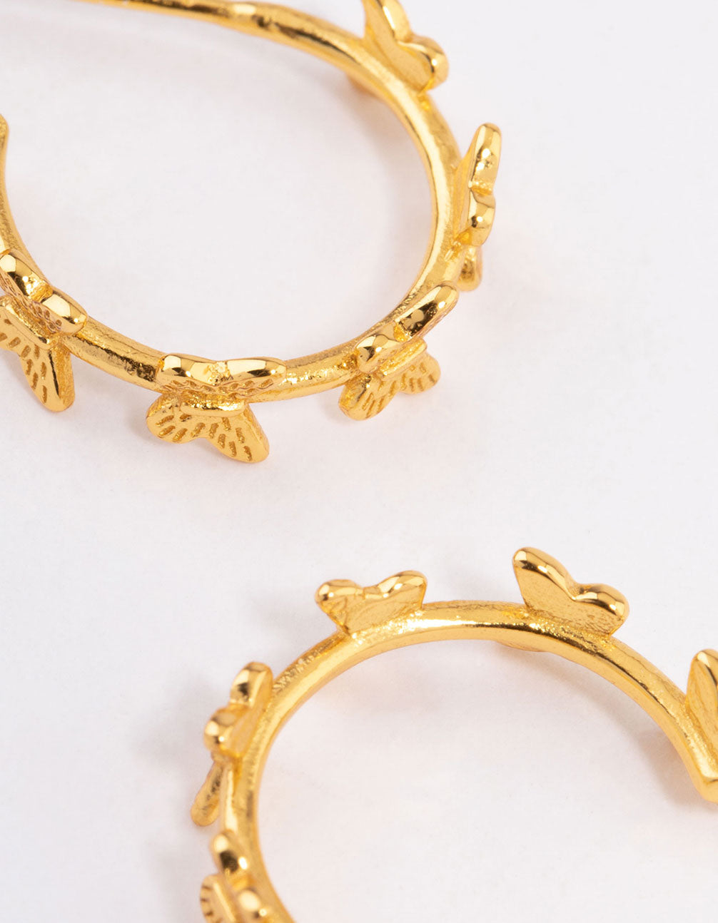 Gold Plated Sterling Silver Multi Butterfly Hoop Earrings