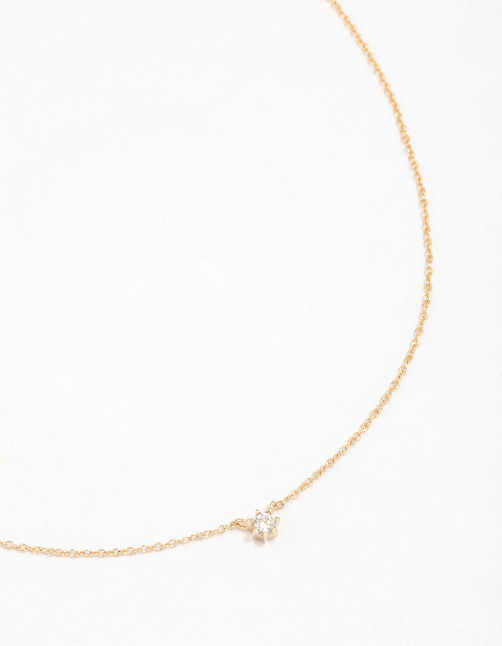 Gold Plated Sterling Silver Round Cubic Zirconia Dainty Necklace
