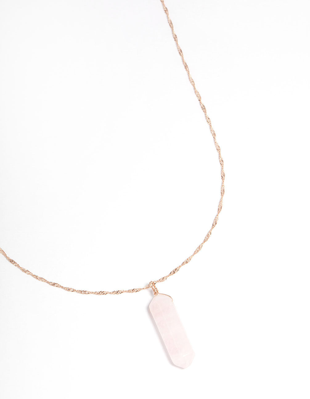 Rose Gold Plated Rose Quartz Shard Twist Necklace