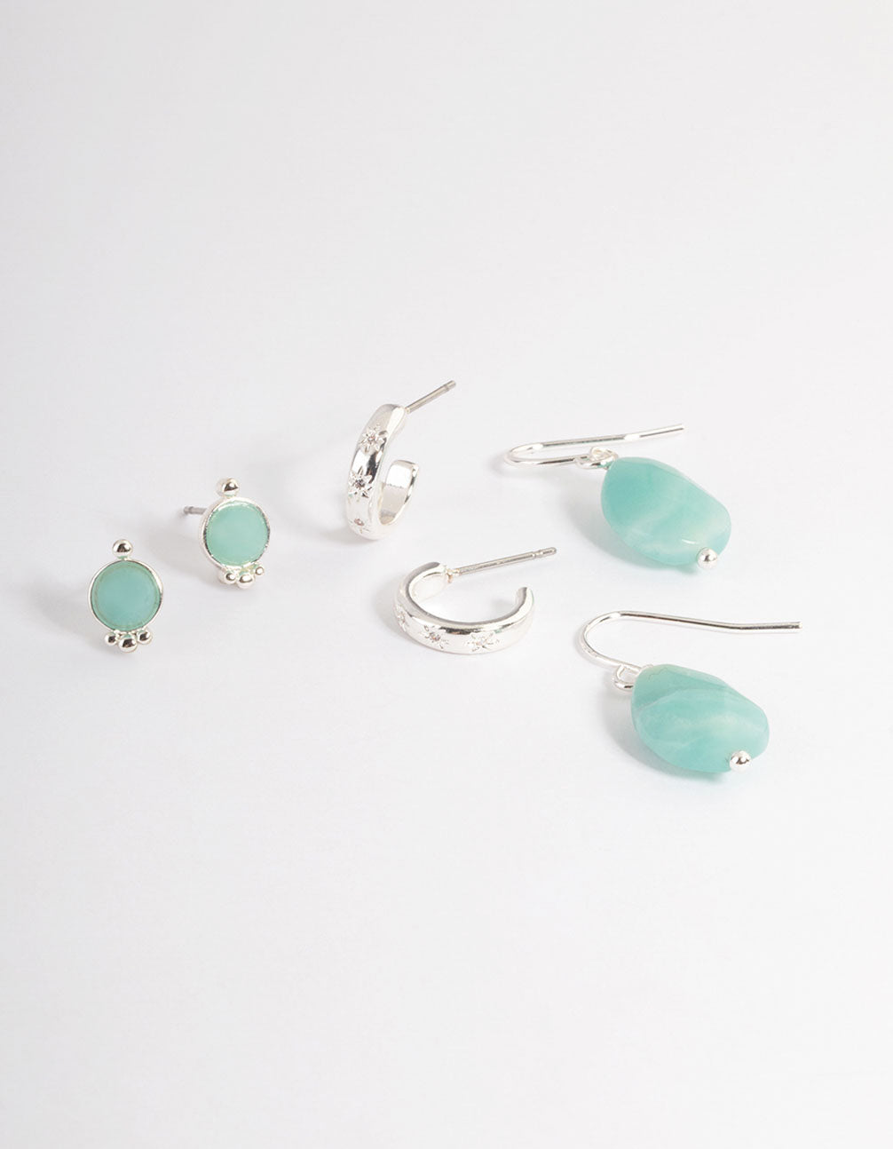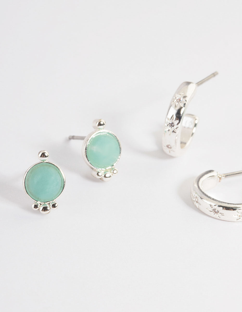 Silver Plated Amazonite Round Star Stack Earrings