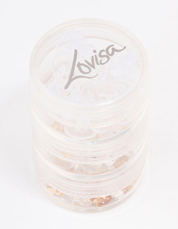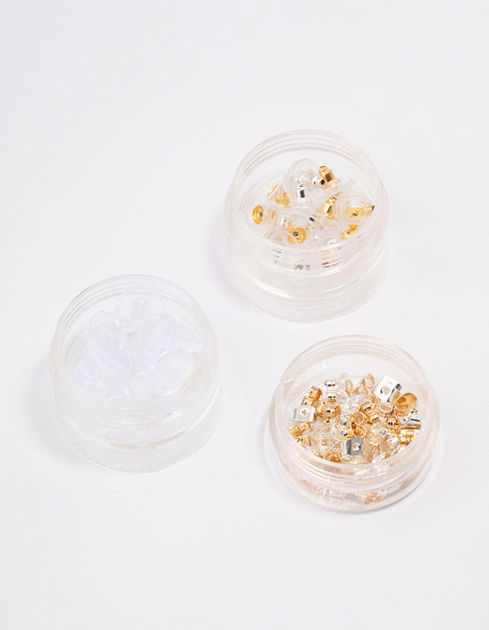 Lost the earring back to your favourite set of studs or drop earrings? Not to worry. This multi-pack of mixed earring backs contains a collection of gold, silver and acrylic earring backs that can be used on a range of different accessories.