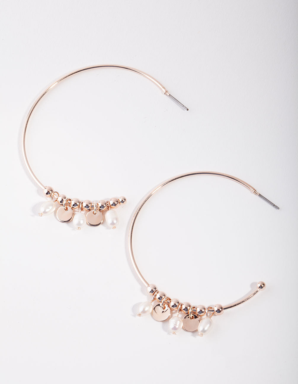 Almost any outfit can be elevated with a pair of hoop earrings. Upgrade your hoop collection with these large hoops, which are plated with genuine rose gold. They feature an intricate centrepiece design made up of polished balls, drop discs and faux pearls that adds extra luxury factor. Wear them on their own and make a statement!