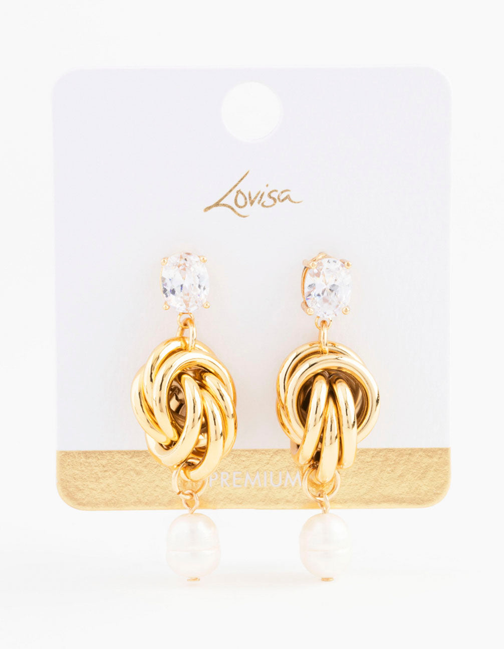 • Gold Plated Cubic Zirconia & Freshwater Pearl Knotted Drop Earrings - link has visual effect only