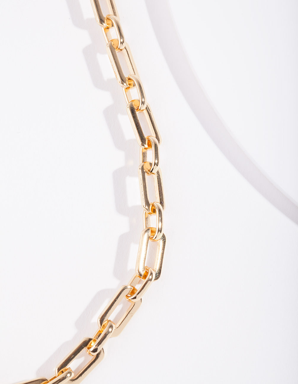 A collection of precious pieces made in the finest quality metal platings. This necklace features a classic rectangle chain link design with a gold plated finish.
