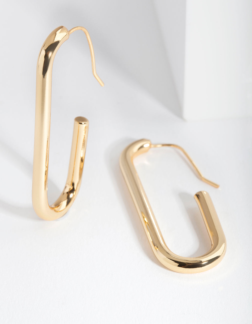 Invest in quality with pieces that feature genuine gold plating. This lovely rectangular hoop earring set makes a bold yet classic everyday statement piece. It's plated with real gold for authentic lustre and shine. Style with gold chains or pearl accessories for a fashion-forward look.