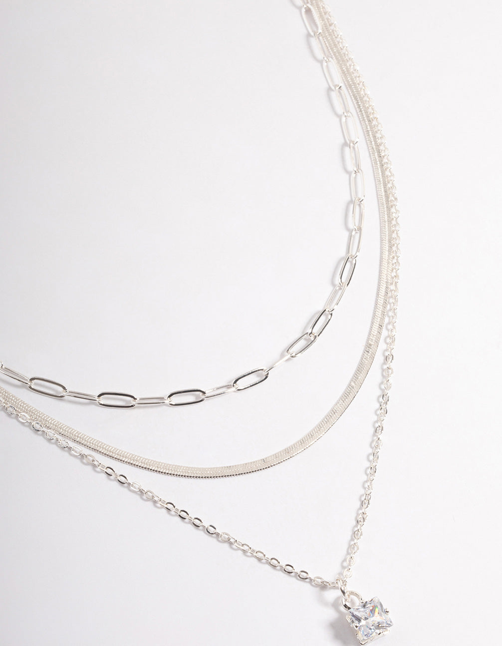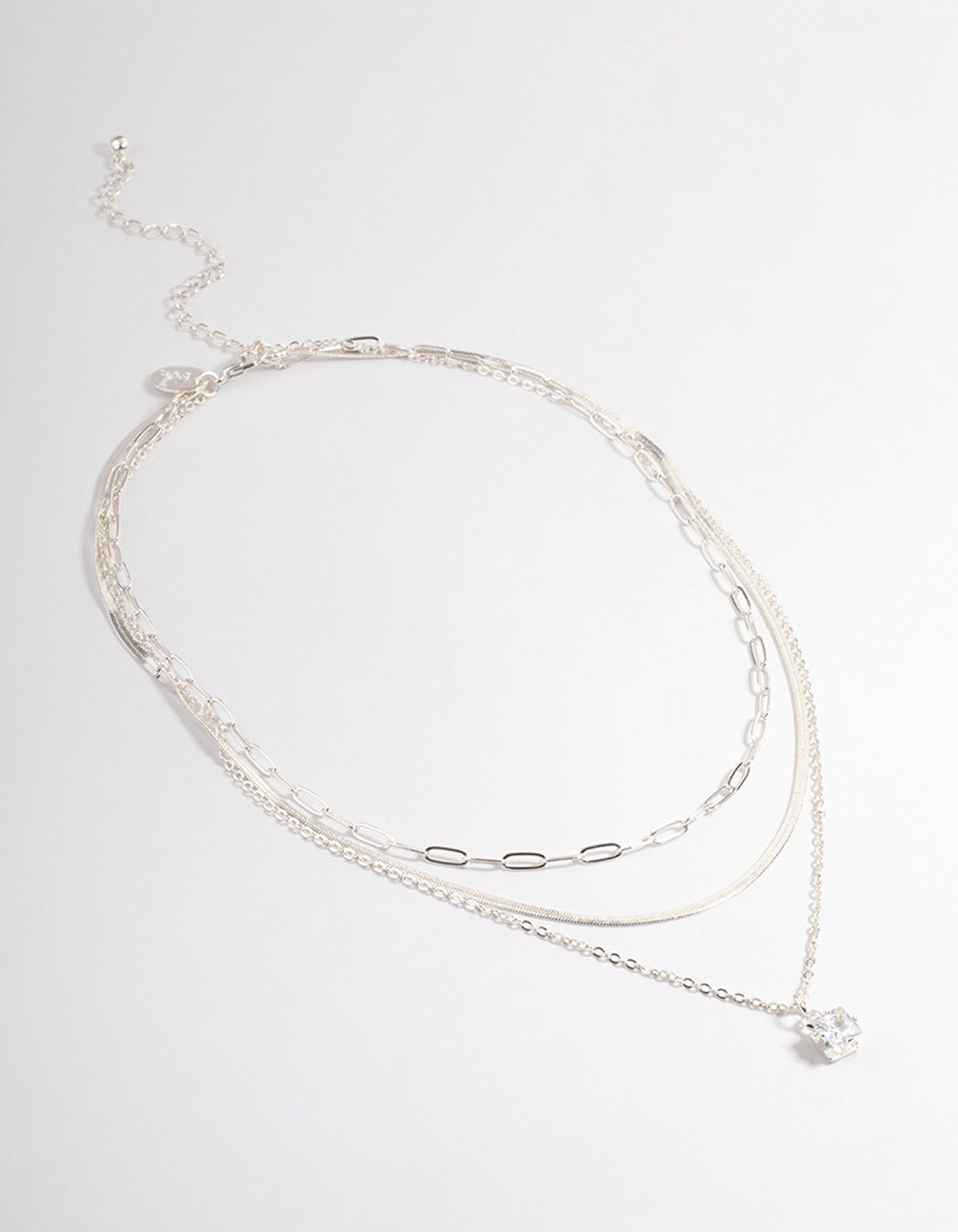 - This silver-plated chain necklace features a square, cubic zirconia diamond for a luxe finish.