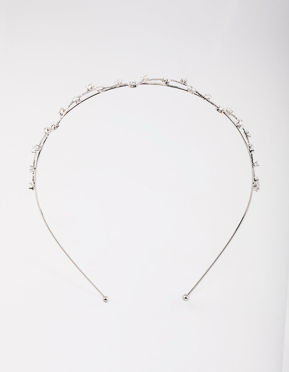 - This dainty headband features a gold setting and vine design, encrusted with delicate cubic zirconia crystals for a feminine touch.