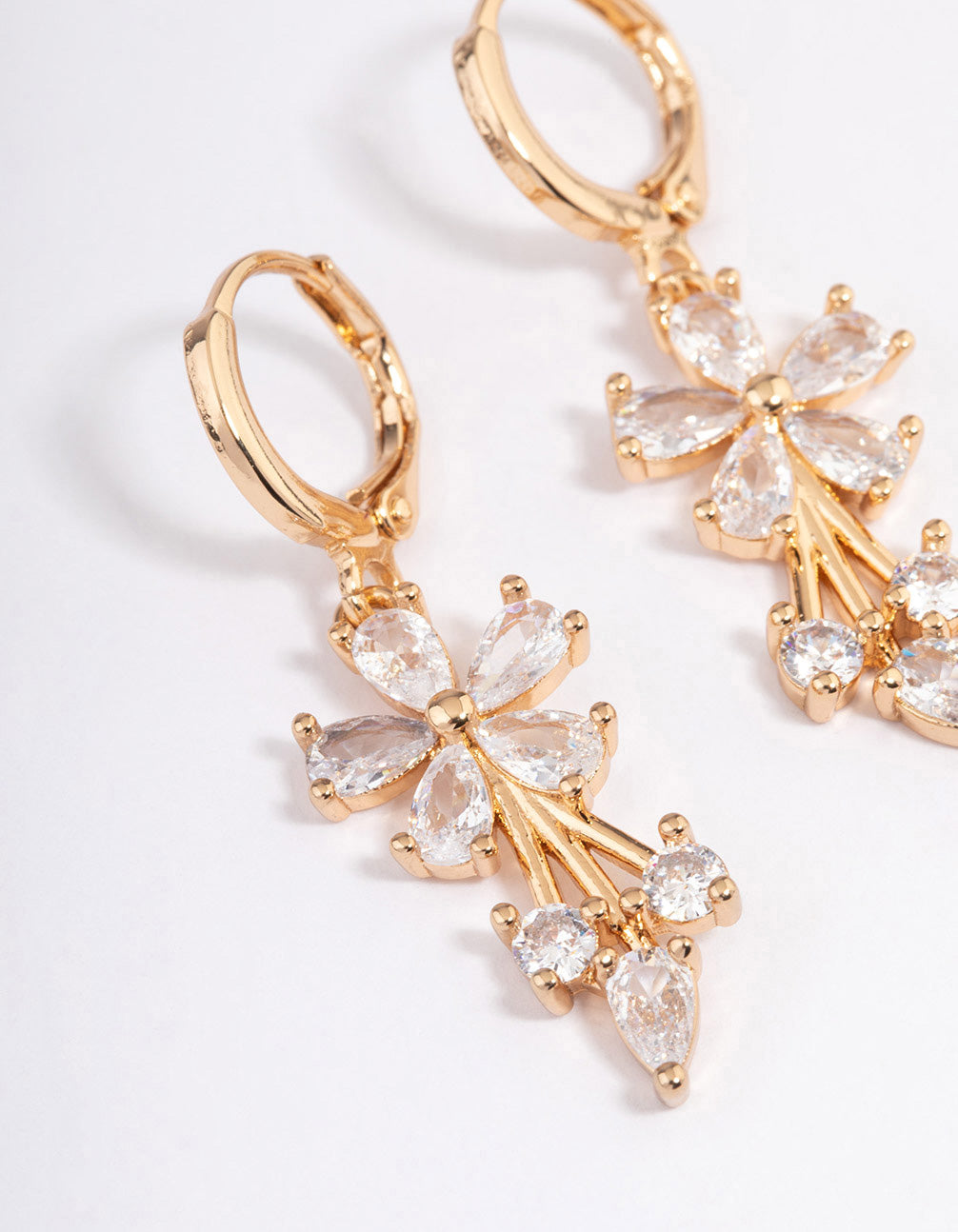 Gold Plated Cubic Zirconia Flower Drop Huggie Earrings