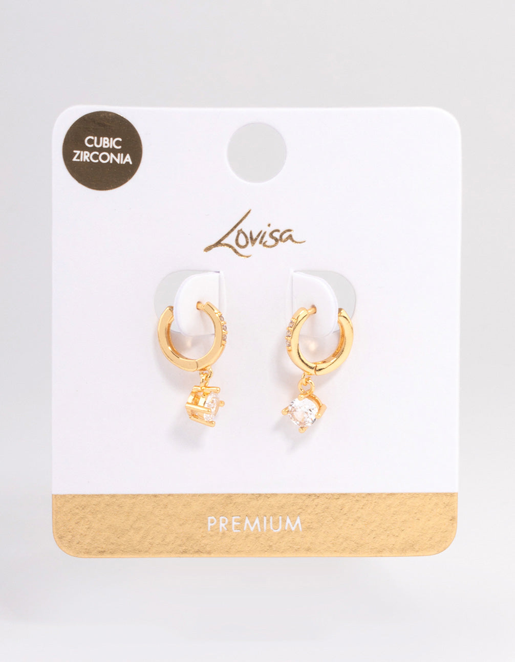 - These gold, solitaire drop huggie earrings are perfect for brides and bridesmaids on the big day.