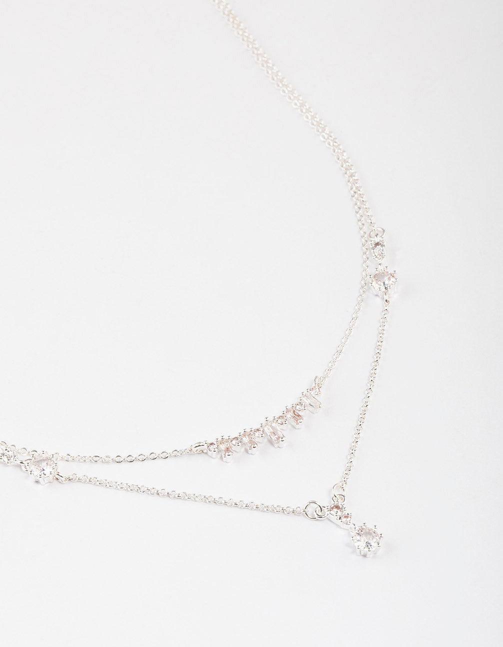 Silver Plated Dainty Cubic Zirconia Double Layer Necklace