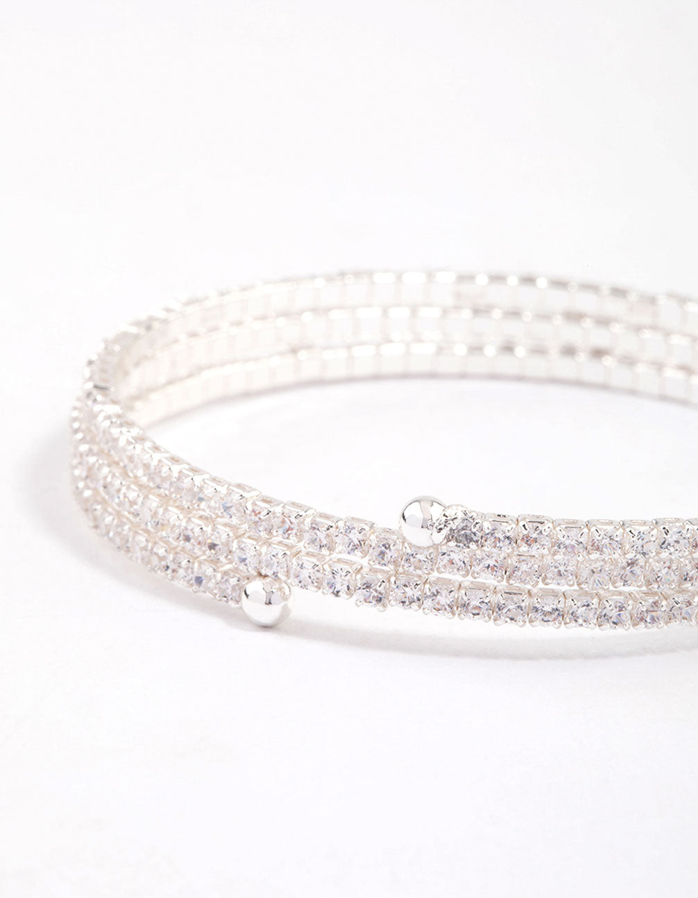 - This simple, silver plated wrist cuff features a cupchain design with marquise stones for added detail.
