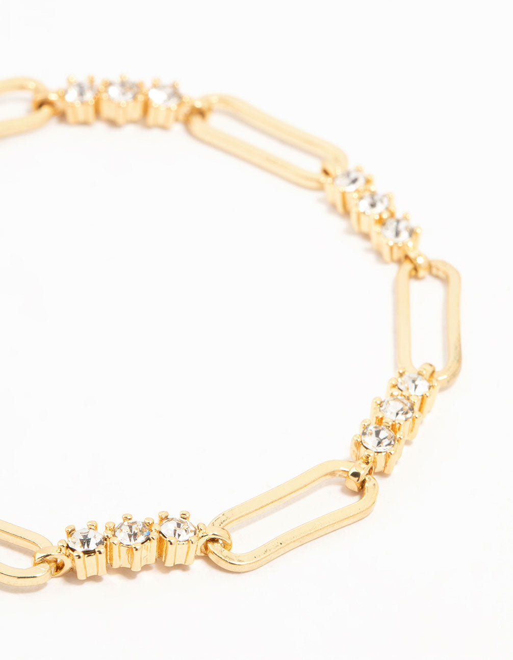 Add a playful twist to your wrist stack with this stunning gold plated brass bracelet. Featuring a mix of sparkling cubic zirconia crystals and chic paperclip links, it's the perfect accessory to upgrade your style.