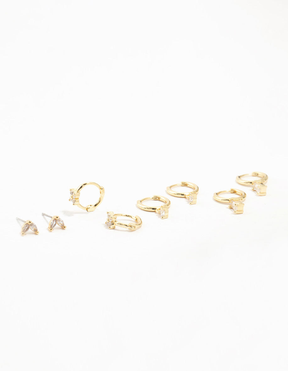 Gold Plated Brass Cubic Zirconia Hoop Earrings 4-Pack