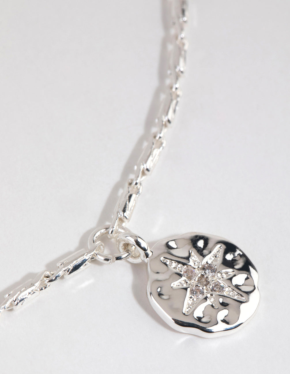 You're precious, so you deserve precious metals! This necklace is plated with genuine silver for authentic lustre and shine. It features a circular pendant with a star design and diamante embellishments.