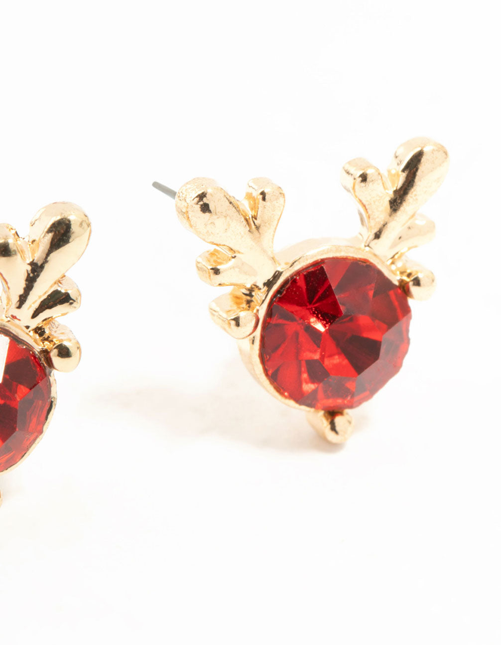 Add seasonal sparkle and fun to your look with these stunning stud earrings. Adorned with a captivating red diamante center for extra sparkle and gold-toned reindeer antlers for a festive touch.