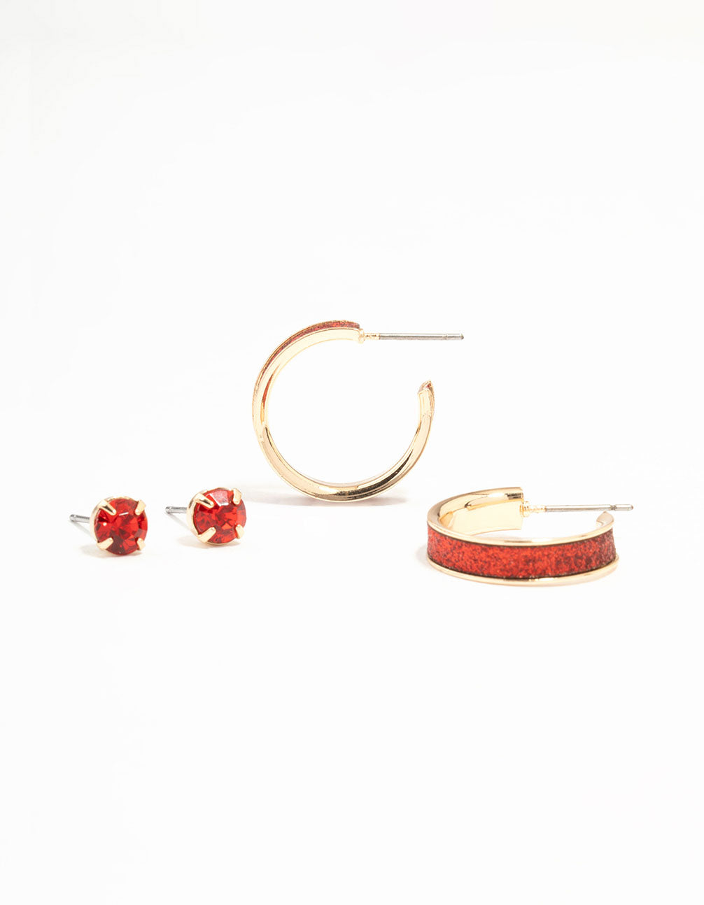 Red Glitter Hoop Earrings & Red Diamante Stud Earrings 2-Pack