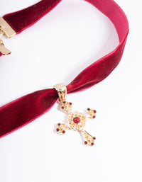 Red Pearl Cross Choker