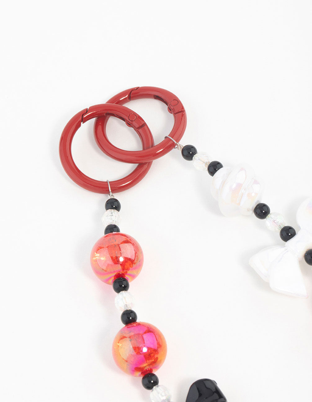 Spice up your style with Y2K glam using this pearl, bow, and heart keyring! With bold red, white, and black tones, plus cool beads and heart motifs, it's perfect for giving your bag game an edgy, playful boost.