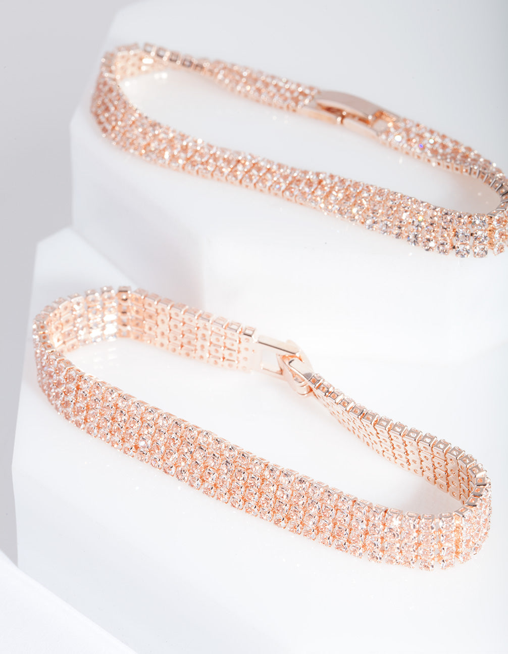 Add some sparkle to your wrist with these two rose gold-tone diamante cupchain bracelets.