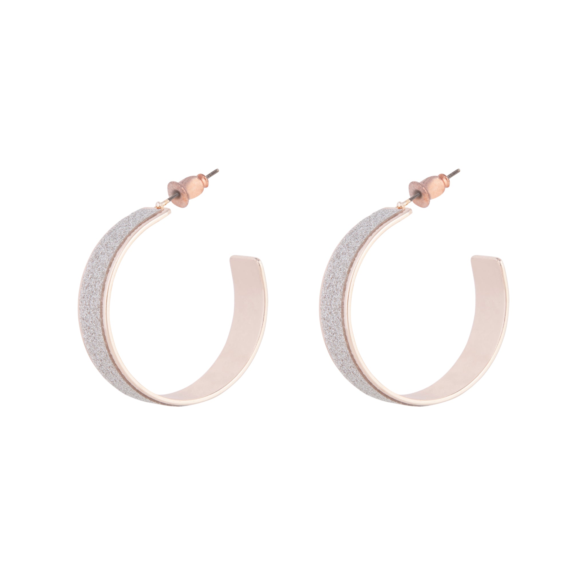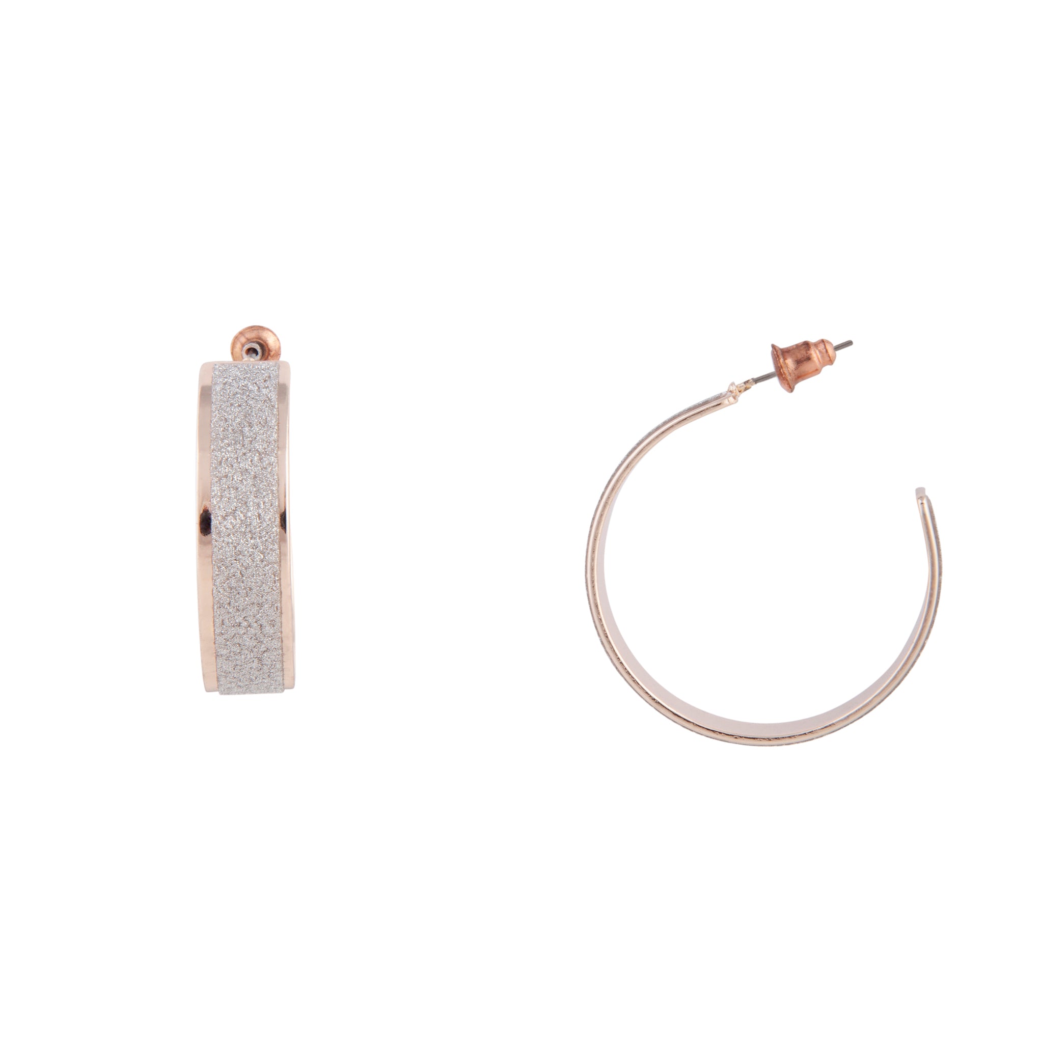 A pair of rose-gold-toned 3cm hoop earrings with glitter feature.