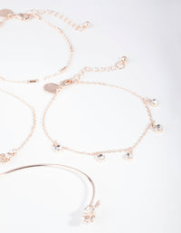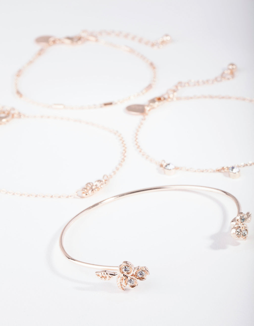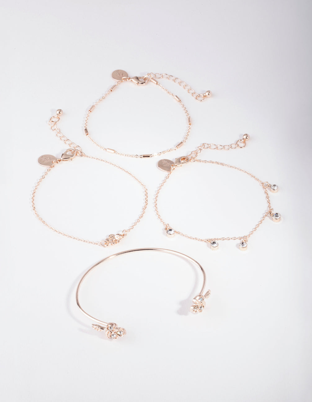 The perfect subtle addition to your spring look! Fine chain rose-gold-toned bracelets with ditsy flower and diamante details. Includes 3 chain bracelets and one fine metal bangle.
