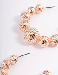 Rose Gold Filigree Graduated Ball Hoop Earrings