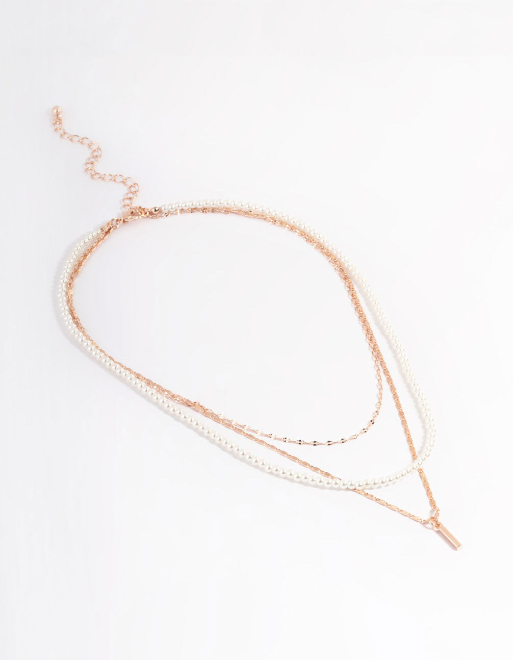 Rose Gold Pearly Mixed Triple Row Chain Necklace