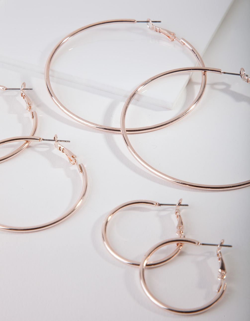 Classic rose-gold-toned styles make the perfect addition to your daily collection. This pack features a trio of hoop earrings with a polished finish.