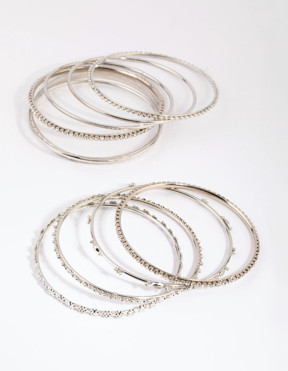 Jingle, jangle - I like your bangle! This bangle pack includes six silver bangles. Layer them together for maximum impact!