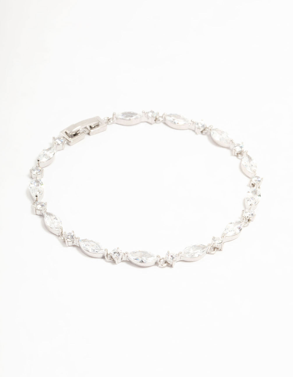 Silver Almond Cubic Zirconia Tennis Bracelet