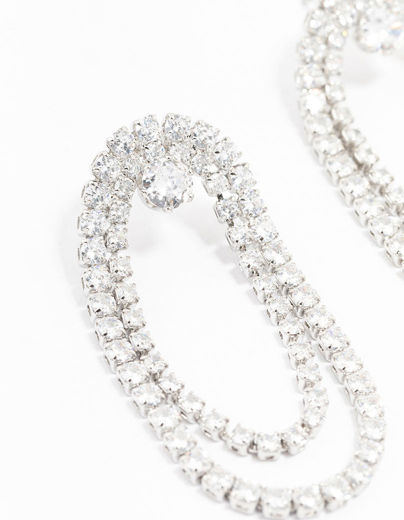 Silver Cubic Zirconia Draped Cupchain Earrings