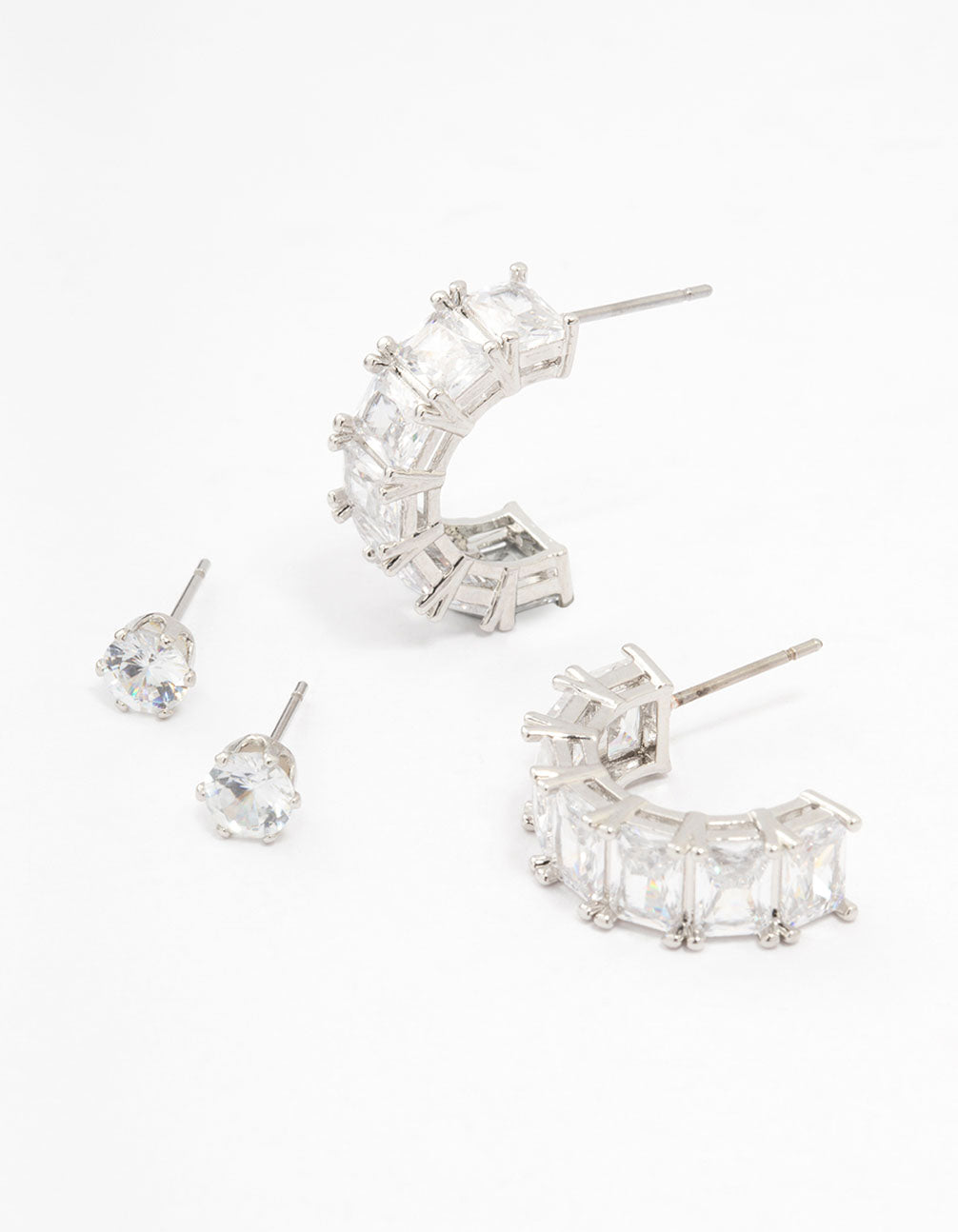 Rhodium Cubic Zirconia Hoop & Earrings Multipack