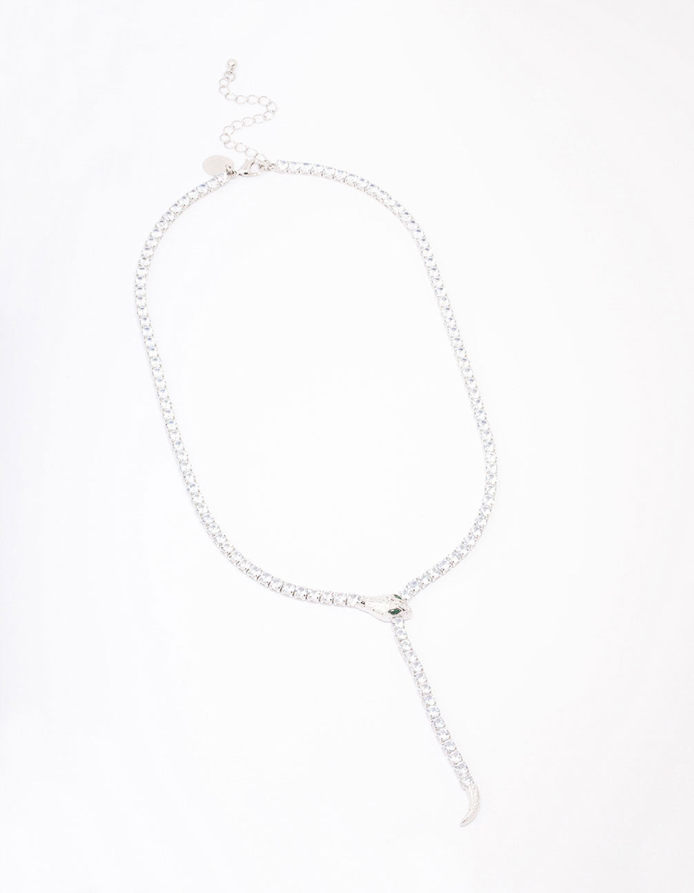 Silver Cubic Zirconia Snake Y-Shape Necklace