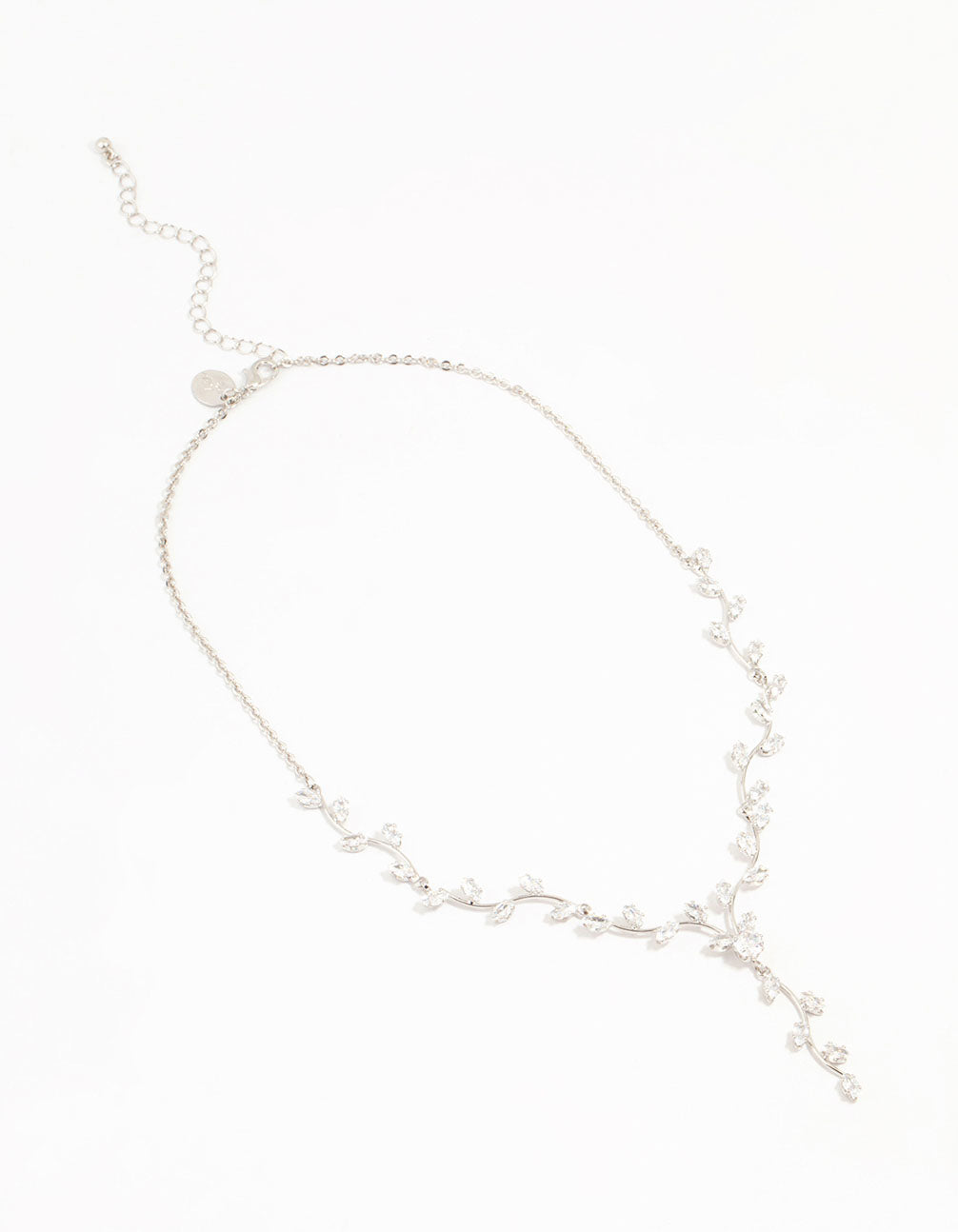 Shine bright with the Silver Cubic Zirconia Vine Y-Necklace. Its stunning design drapes elegantly, adding instant glam to any outfit. Wear it solo for a refined sparkle, or layer it for a trendy look.