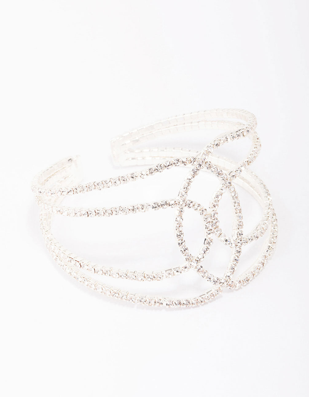 For a glamorous addition to your stack, style this silver-toned wrist cuff. This bold cuff features a collection of swirling diamantes, perfect for adding volume to your look.