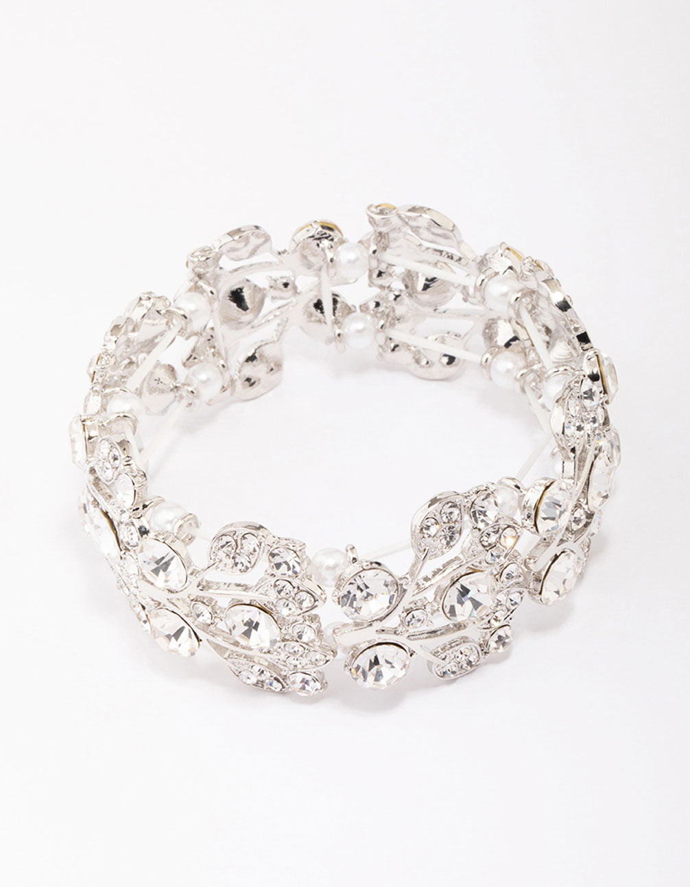 Silver Diamante Pearl Stretch Bracelet