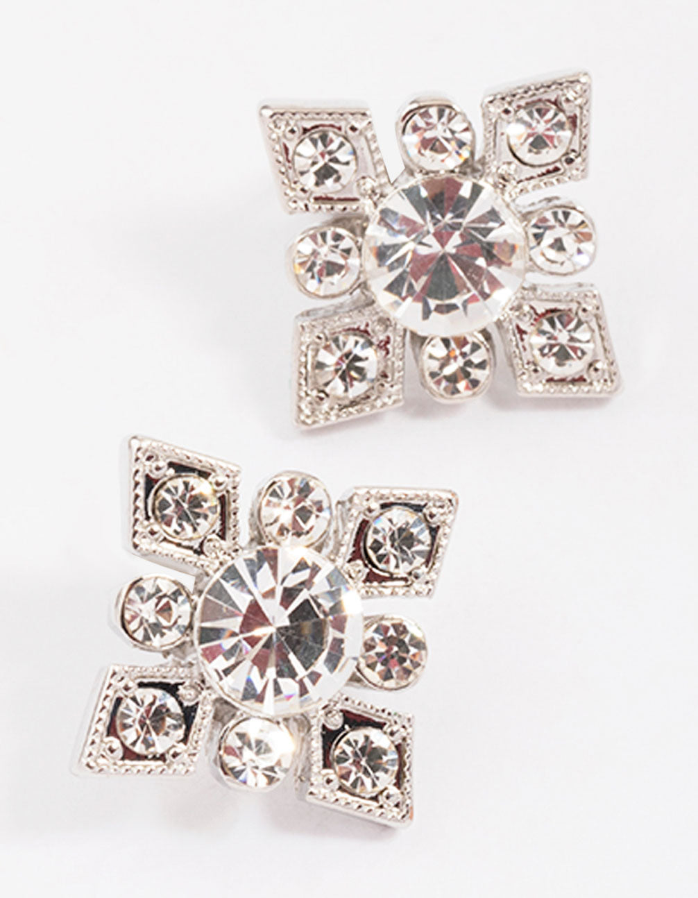 Silver Diamante Square Stud Earrings