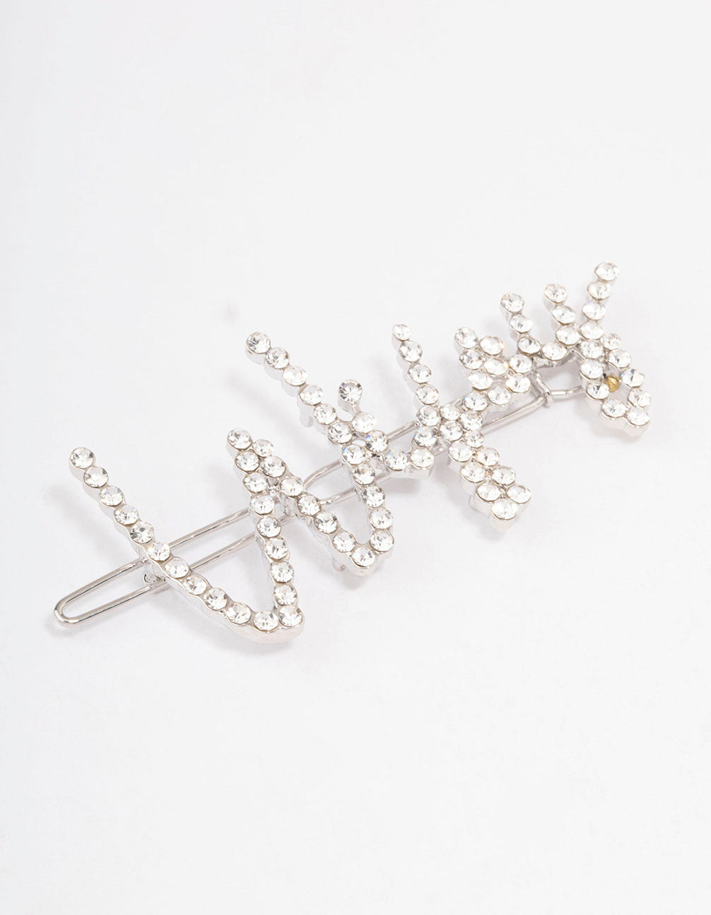 These chic, silver-toned hair clips feature a diamante-studded script design that spells the word 'Wifey.'