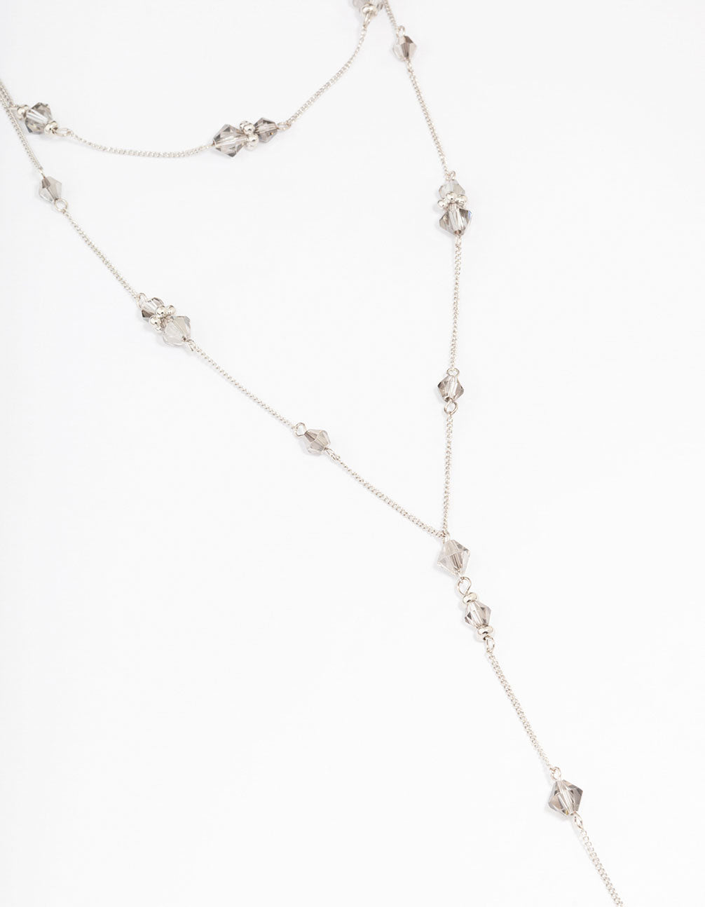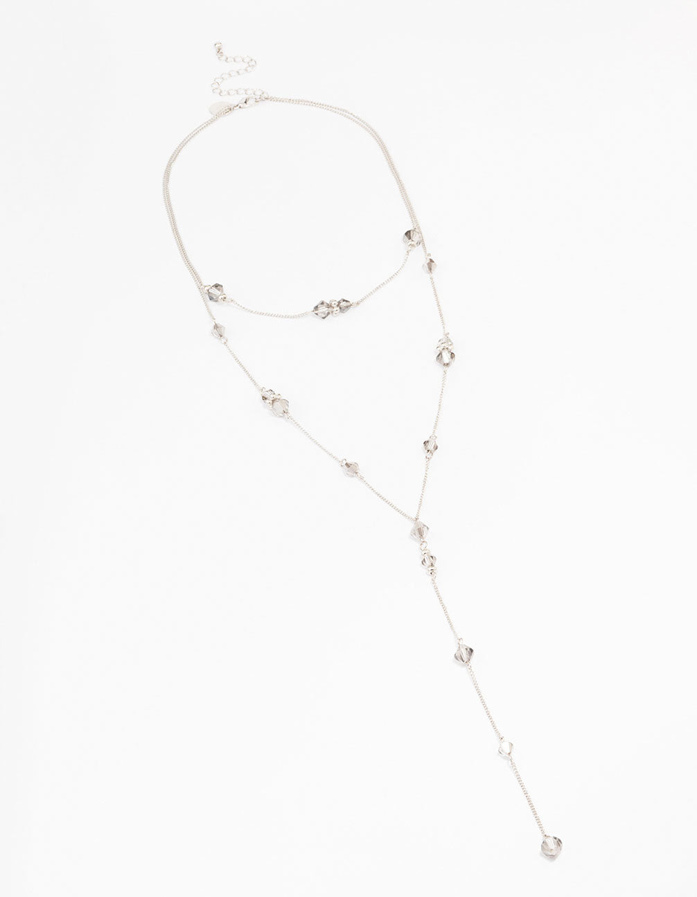 This lariat style necklace is designed with a silver-toned setting and stationed beading, perfect for adding detail to your stack.