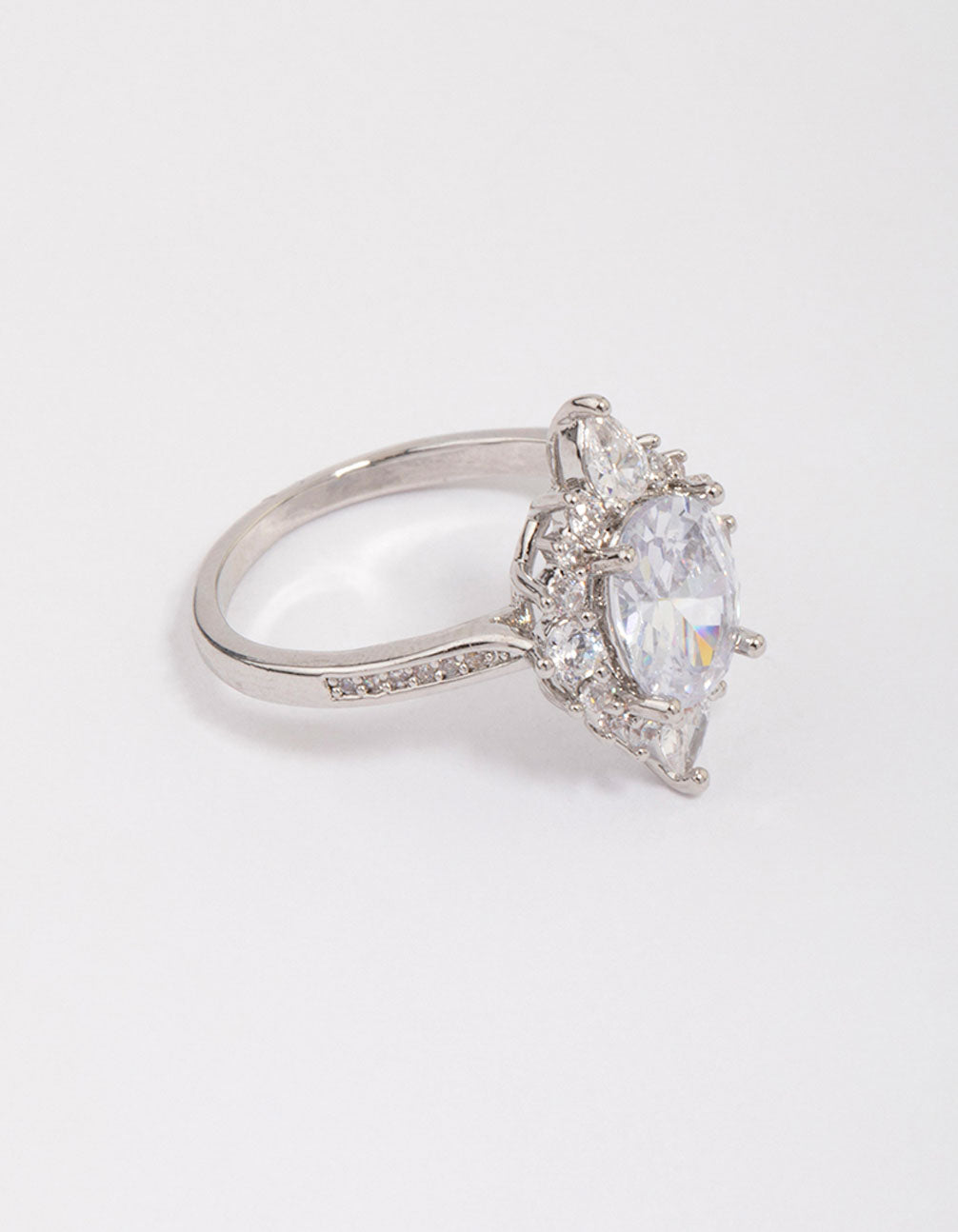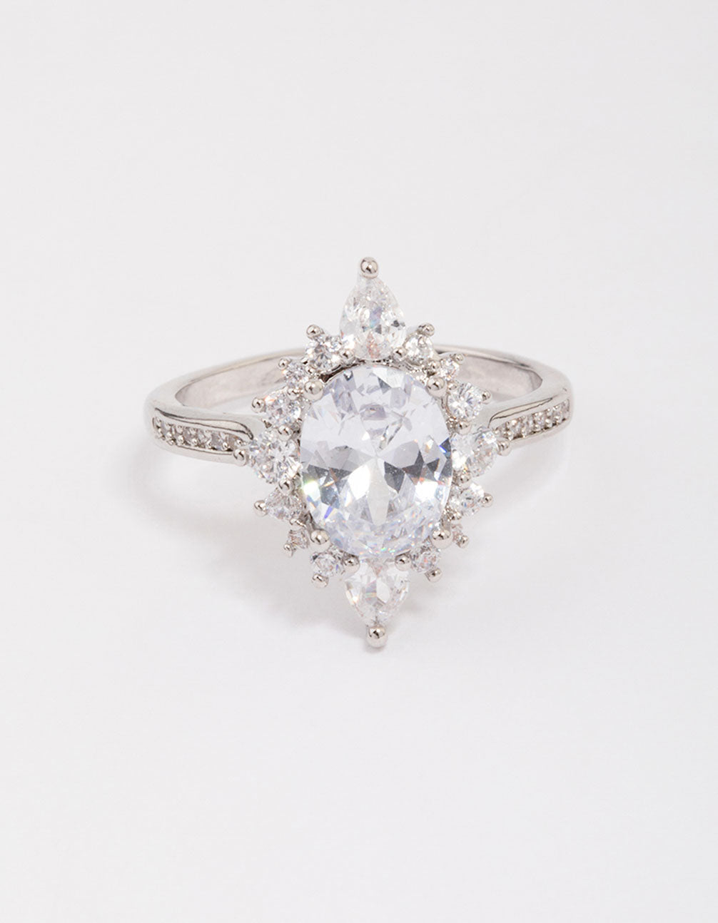 Add a touch of sparkle to your stack with this stunning, silver-toned ring. This gorgeous, engagement style ring features an oval-shaped cubic zirconia crystal in the centre for a modern finish.